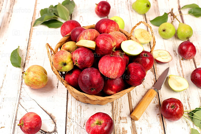 Осенняя композиция яблок в коробке на солнечном деревянном столе, фон Дня благодарения, урожай, концепция здорового натурального питания, детокс-диета и очищение тела, баннер на экране, кафе, ресторан, избирательный фокус