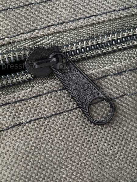 Полуоткрытая молния с замком на текстильной поверхности, крупный план