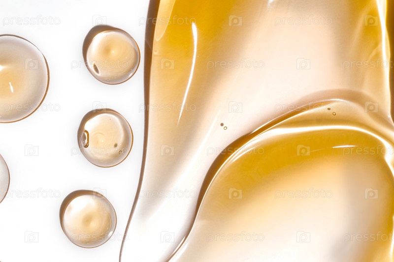 Успокойте мазки геля на белом фоне. Средство по уходу за кожей и телом. Жидкие гелевые косметические пятна и капли
