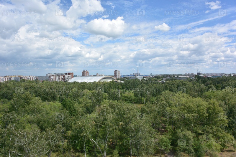 Вид с колеса обозрения на парк и город Омск