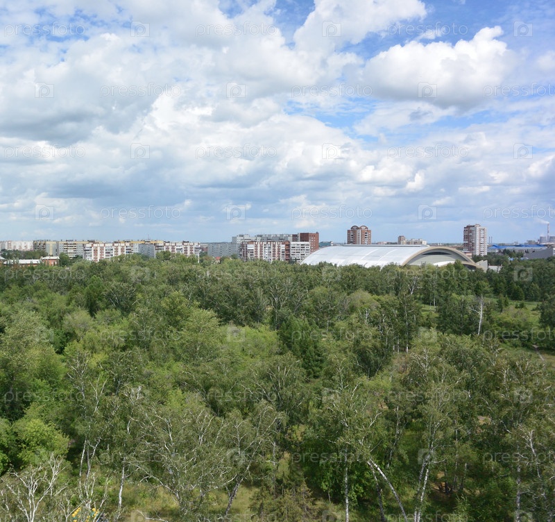 Вид с колеса обозрения на парк и город Омск