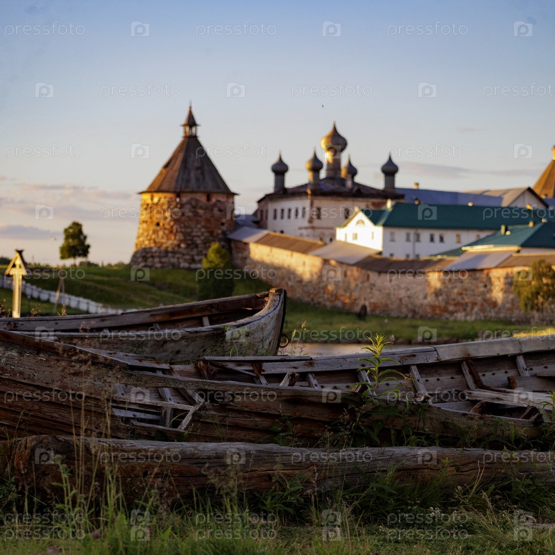 Лодки на берегу Бухты Благополучия Соловецкого монастыря