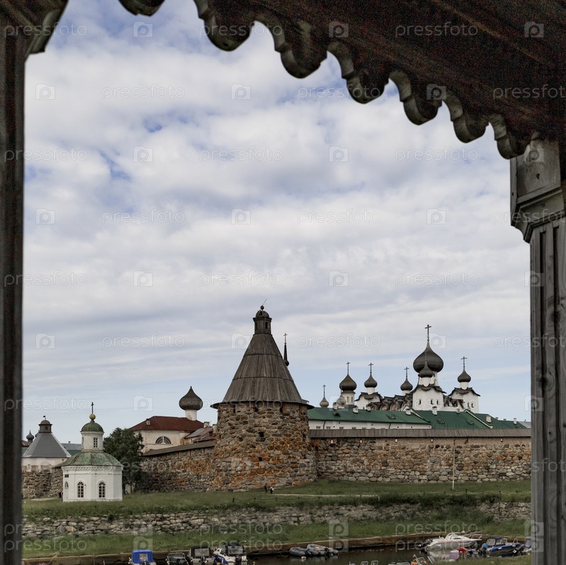 Вид на Соловецкий монастырь из часовни - беседки