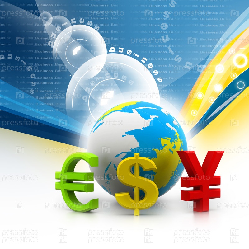Глобус с символами валют на абстрактном фоне