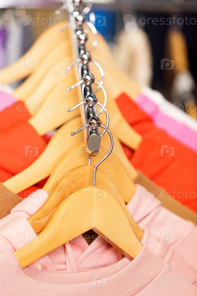 Крупным планом фотография одежды, висящей на полке в современном магазине модной одежды
