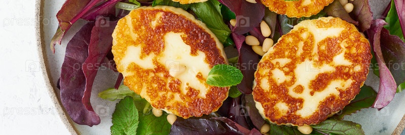 Жареный кипрский халуми с салатным миксом, свекольным ботом. lchf, pegan, fodmap, paleo, scd, keto