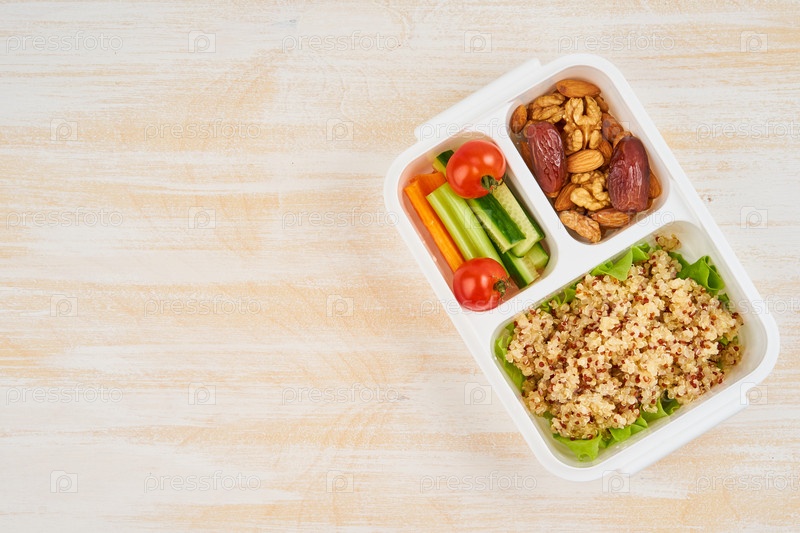 Веганский ланч-бокс, место для копирования. Здоровое вегетарианское меню, потеря веса, здоровый образ жизни