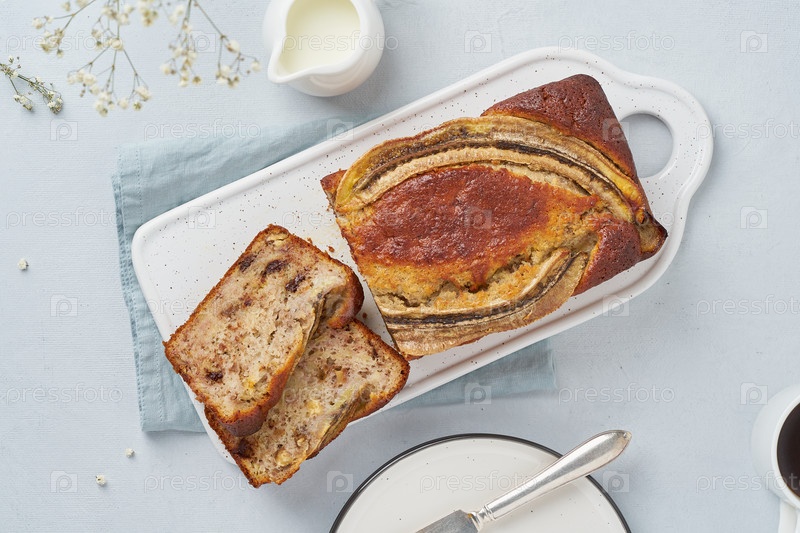 Банановый хлеб. Пирог с бананом, шоколадом, грецким орехом. Традиционная американская кухня