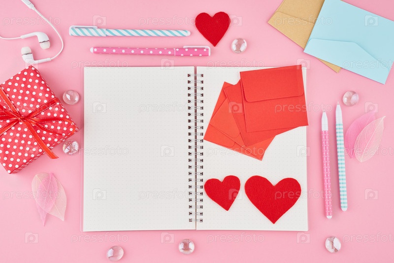 Концепция написания записок, писем ко Дню святого Валентина. Страница блокнота
