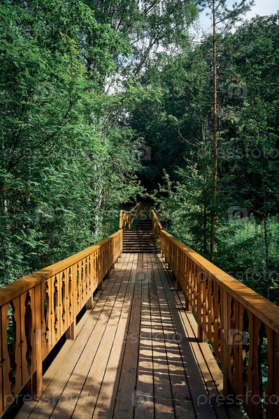 Деревянные лестницы среди деревьев, летняя природа, отдых на даче
