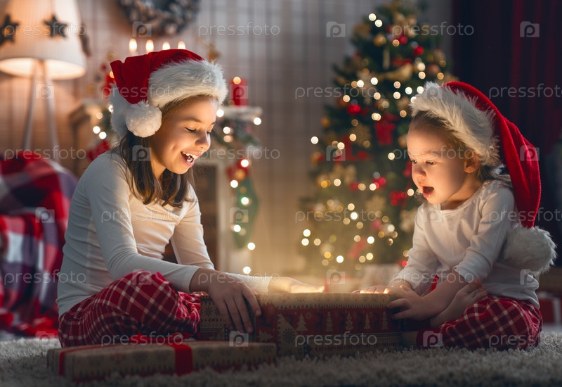 Дети открывают рождественские подарки