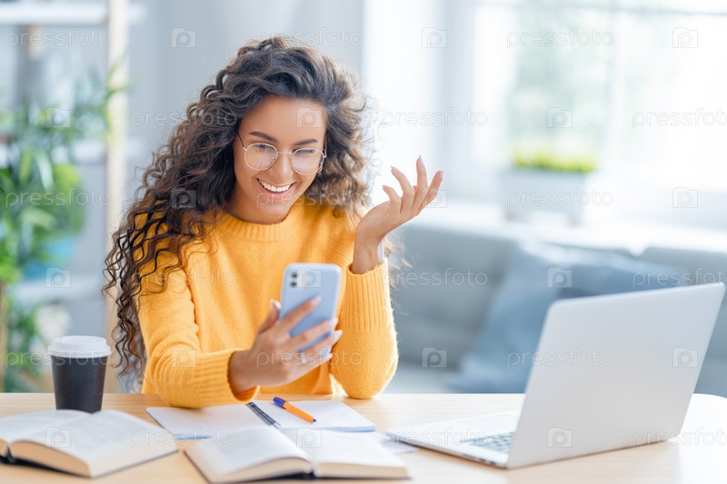 Женщина работает дома за ноутбуком