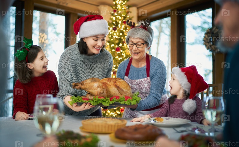Семья празднует Рождество
