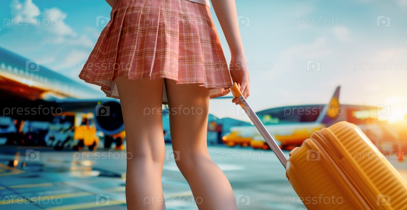 Ноги молодой женщины с чемоданом