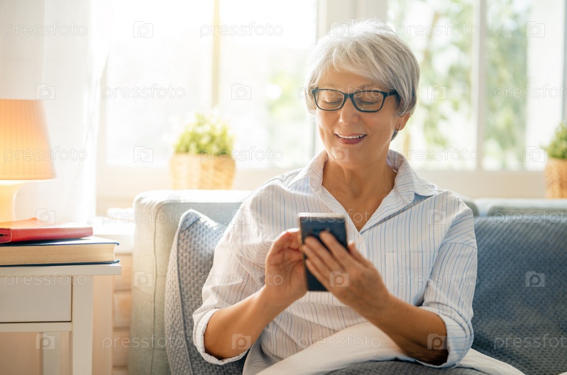 Пожилая женщина пользуется смартфоном