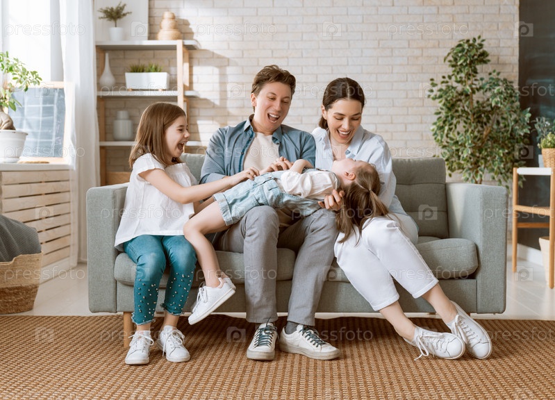 Двое детей с матерью и отцом