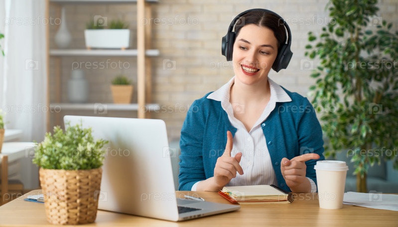 Женщина работает дома за ноутбуком
