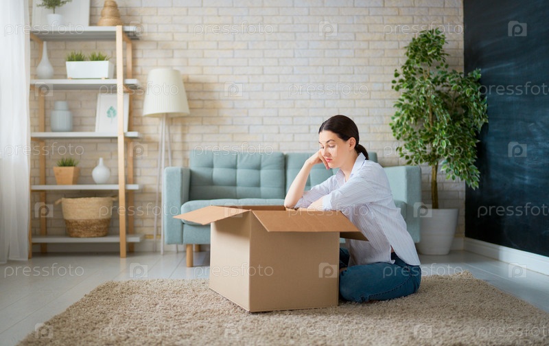 Женщина держит картонную коробку