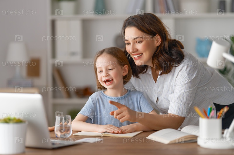 Девочка выполняет домашнее задание или обучается онлайн