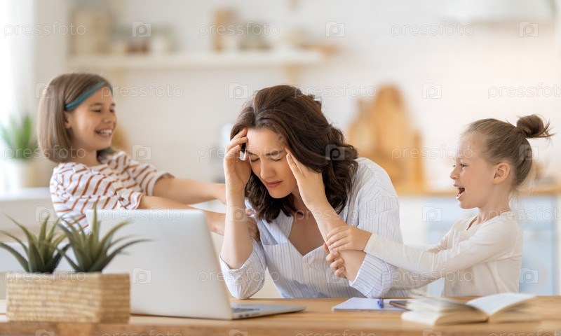 Женщина работает на ноутбуке дома