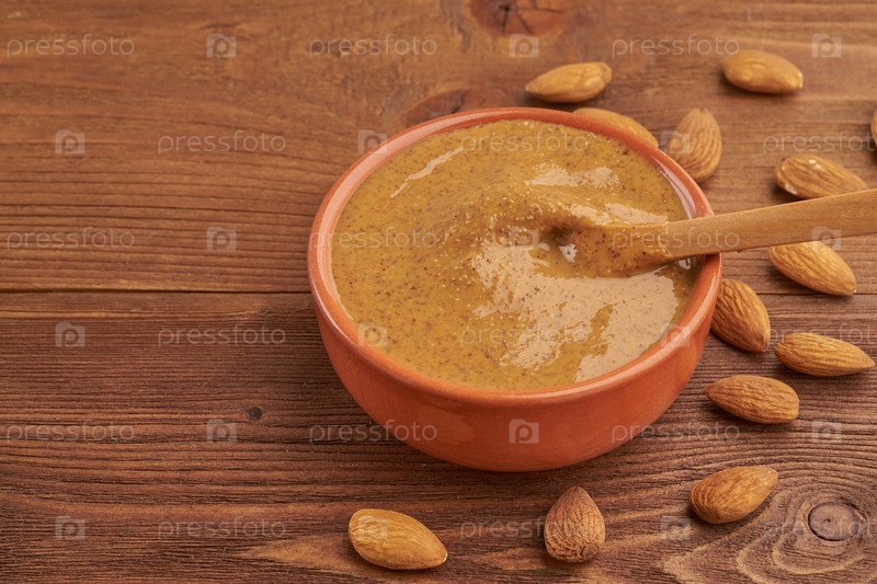 Миндальное масло, сыроедческая паста, приготовленная из измельченного миндаля