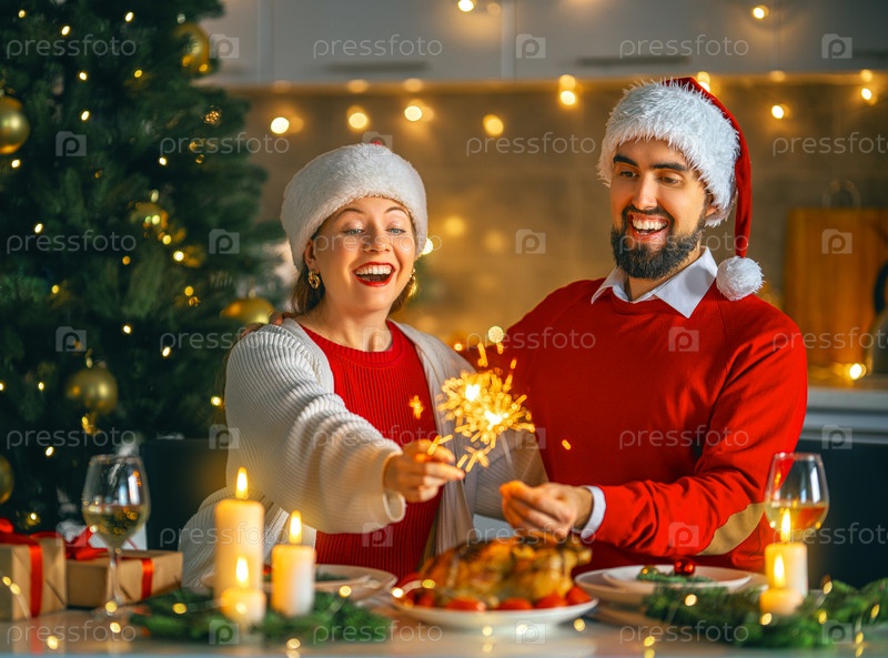 Пара ужинает на Рождество