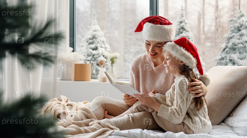 Мать и дочь, девочка, читающая книгу