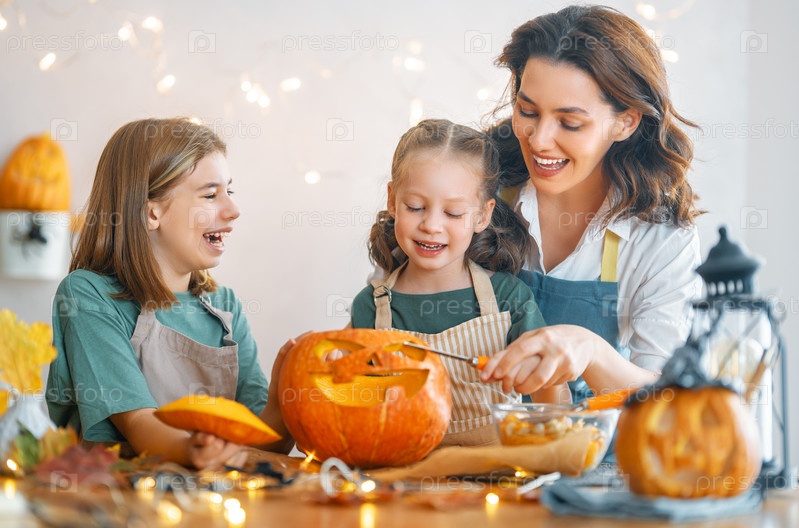 Семья готовится к Хэллоуину