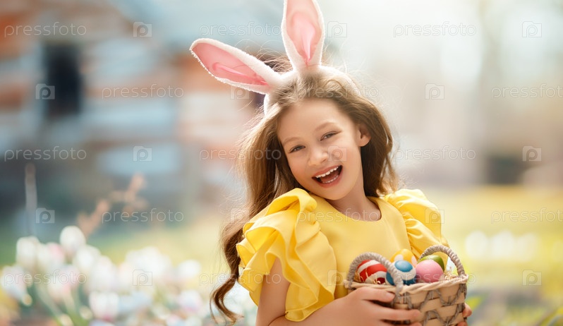 Ребенок красит яйца на улице