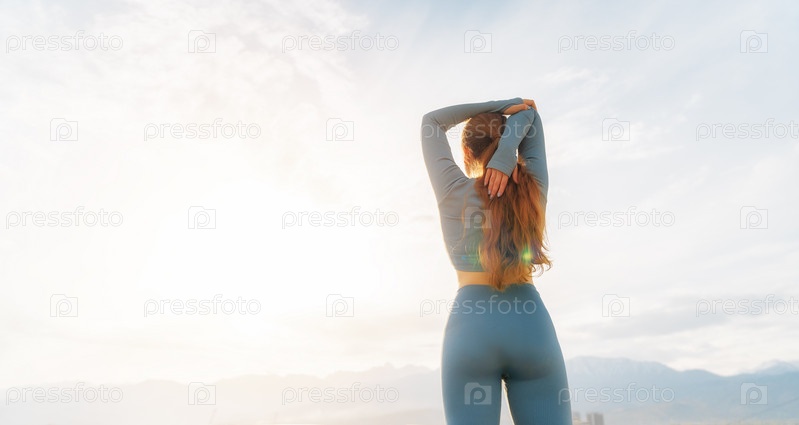 Молодая спортсменка разминается