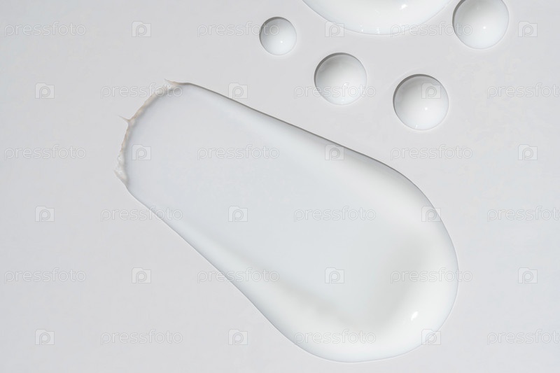 Белые пятна и капли отражают мазок крема для лица или тела на белом фоне.Концепция чистоты и свежести