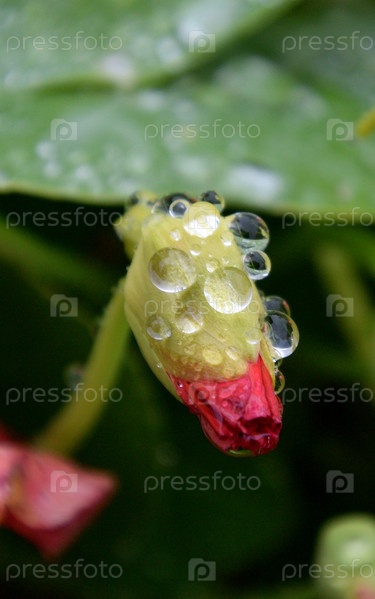 Бутон настурции в каплях дождя