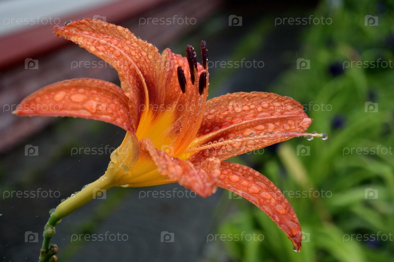 Цветок лилейника с каплями дождя