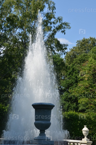 Фонтан Пирамида в Нижнем парке Государственного музея-заповедника Петергоф в Санкт-Петербурге в ясный летний день