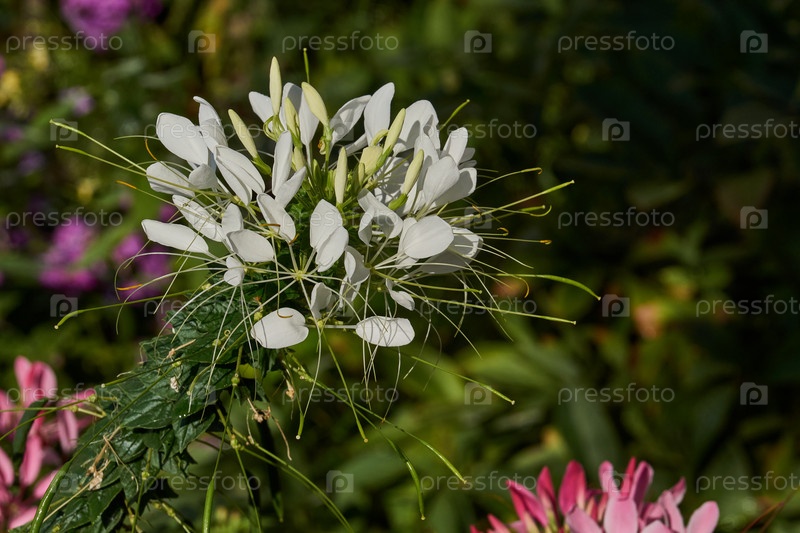 В саду цветет клеома.Клеома (лат. Cleome) род однолетних или двухлетних растений семейства клеймовых