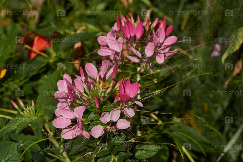 В саду цветет клеома.Клеома (лат. Cleome) род однолетних или двухлетних растений семейства клеймовых