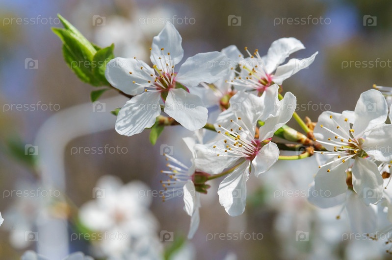 Цветущая ветка дерева весной. Маленькие молодые новые листья на ветке дерева