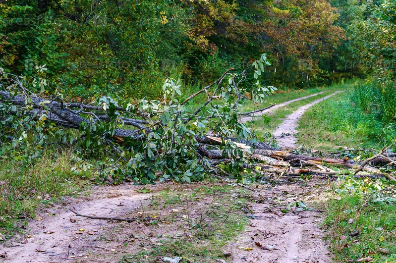 Осенний лес. Лес после бури. Дерево упало на дорогу