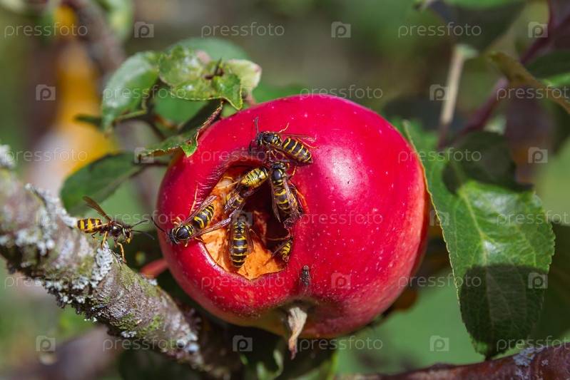 Осы на яблоке