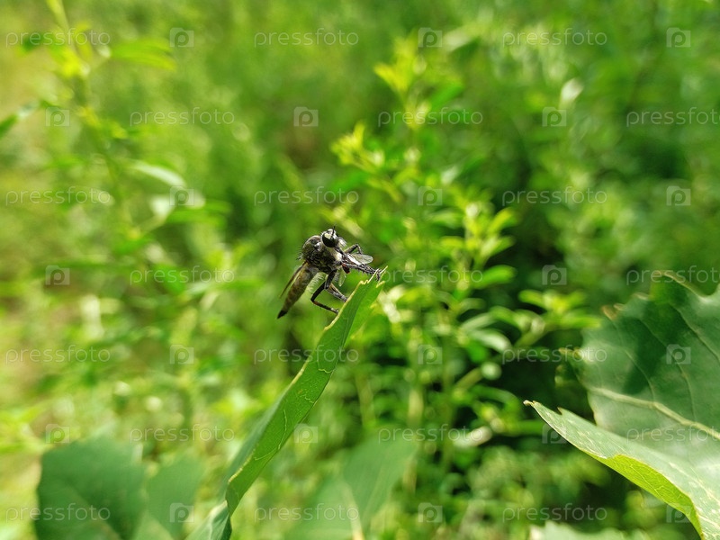 Ктырь. Муха-хищник. Крупный план. Макросъемка