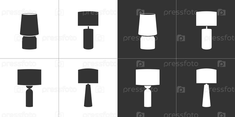 Настольные лампы. Четыре плоские иконки. Черные и белые