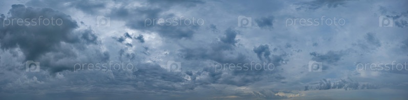 Россия, юг Западной Сибири. Панорамный вид вечернего неба с разноцветными облаками