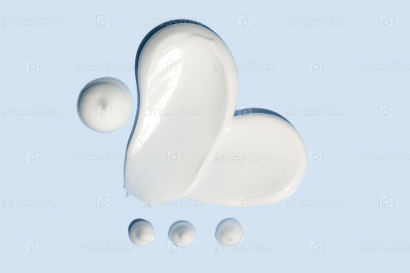 Косметическая мазь кремообразной текстуры в форме сердца на синем фоне. лосьон для тела уход за кожей. крем для лица косметический продукт мазок swatch