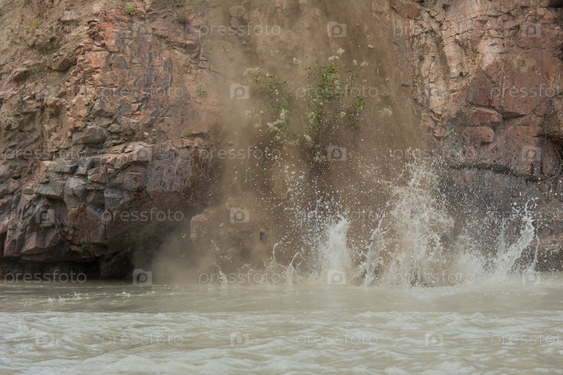 Камнепад в реку Чон-Кемин. Киргизия