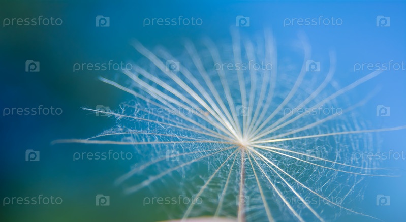 Белый одуванчик с каплями воды крупным планом