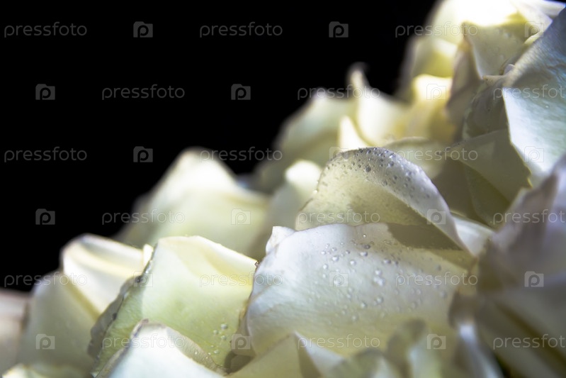 Белые розы с каплями воды на черном фоне