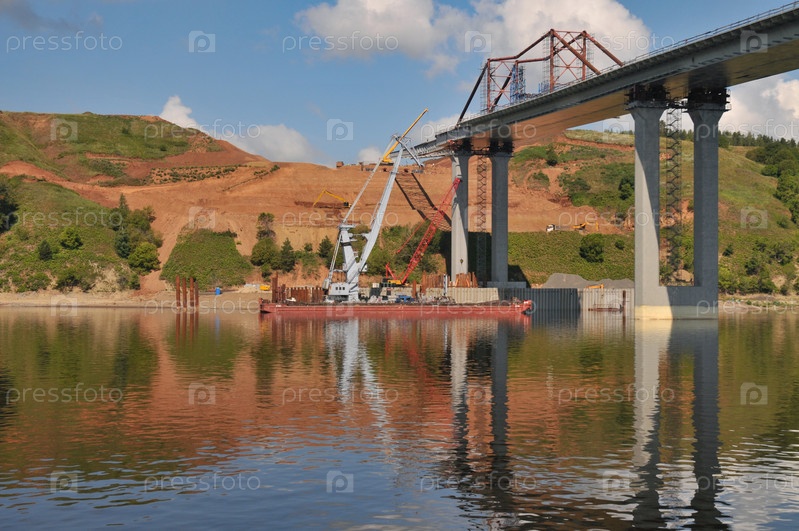 Строительство моста через реку Каму