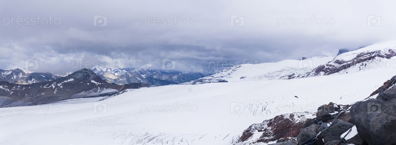 Панорамный вид на склон Эльбруса выше снеговой линии