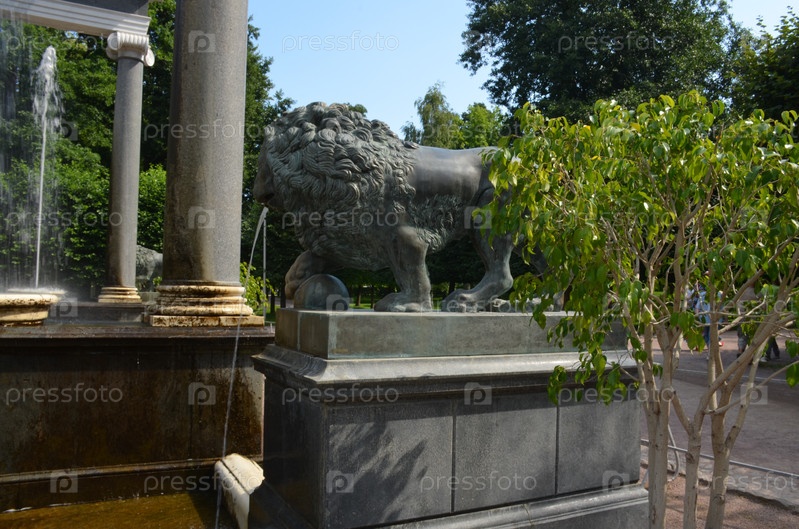 Фонтан Львиный каскад в Нижнем парке Петергофа в Нижнем парке Государственного музея-заповедника Петергоф в Санкт-Петербурге в летний день