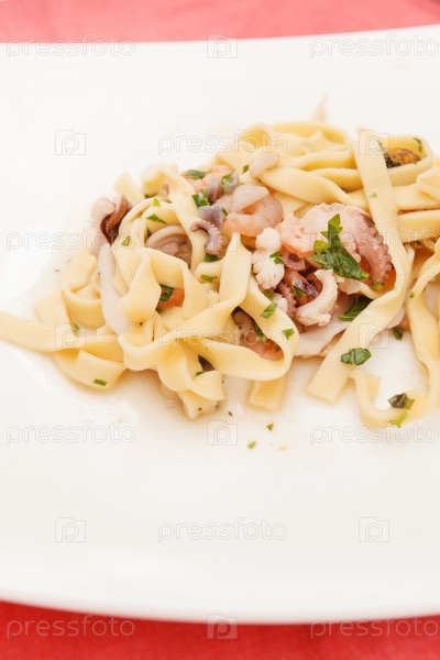 Морепродукты с макаронами